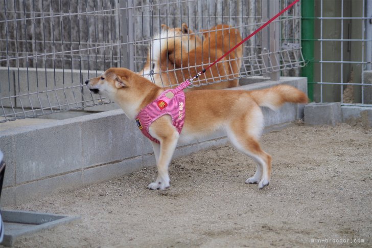 明るく元気で、めげない性格の可愛い子です。久しぶりに母親に会えて嬉しそうに甘えていましたが、ちょうど犬舎の犬達の発情期で、昂ってる父親に甘えに行って叱られてしまいました。それでもその後も耳を後ろにし甘えモードで可愛かったです。