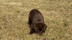 父外産チョコラブ”テディ”君の日本来日初子の子犬達です。骨格構成の良い色の濃い綺麗なチョコレートの男の子です。