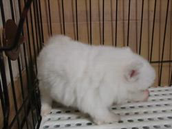 体毛が白なので離乳食による顔の汚れが目立ちますが、そのうちきれいな顔になります。
