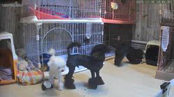 目の行き届く場所で母犬と一緒に過ごしていて、